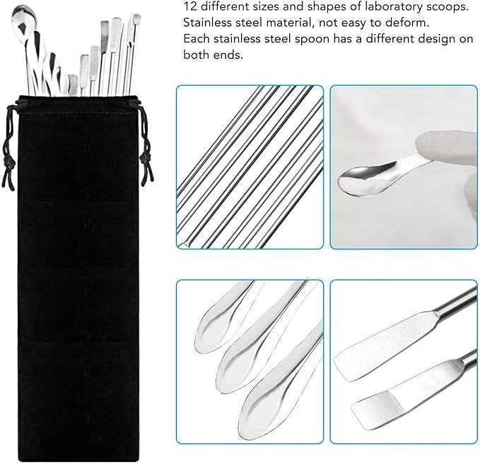This 12-piece Stainless Steel Laboratory Spatula Set includes double-ended micro spatulas and long sampling spoons for precise scooping and measuring. Ideal for experiments, lab work, and reagent handling, it’s a versatile kit for students and professionals.