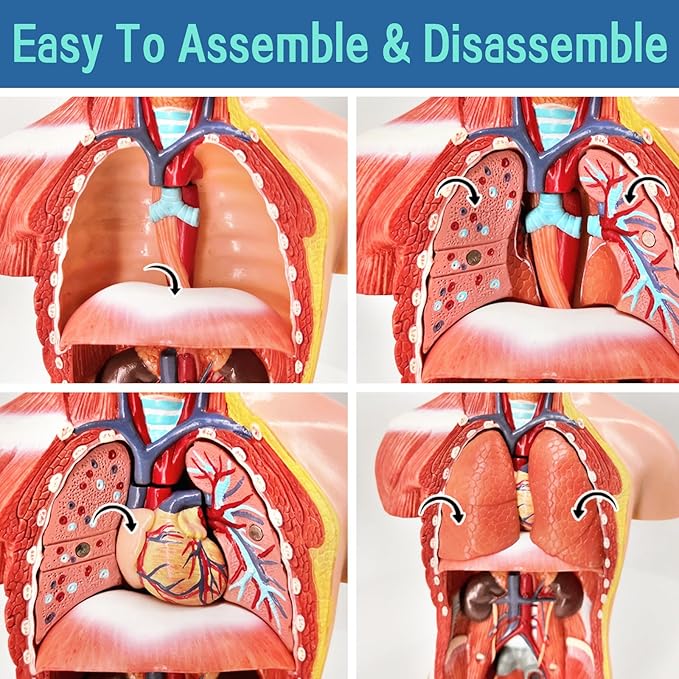 The EVOTECH 15-piece Kids Anatomy Model features a removable 11-inch human torso with detailed heart, brain, head, and skeleton parts. Designed for children aged 4+, it’s perfect for preschool, school education, and beginner medical students to explore human anatomy in a hands-on way.