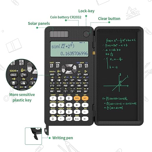 The NEWYES 991ES Plus Scientific Calculator combines 417 advanced functions with a built-in writing tablet for quick notes. Powered by solar and battery, it’s portable, professional, and ideal for students, teachers, and everyday calculations.