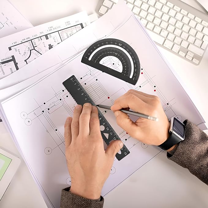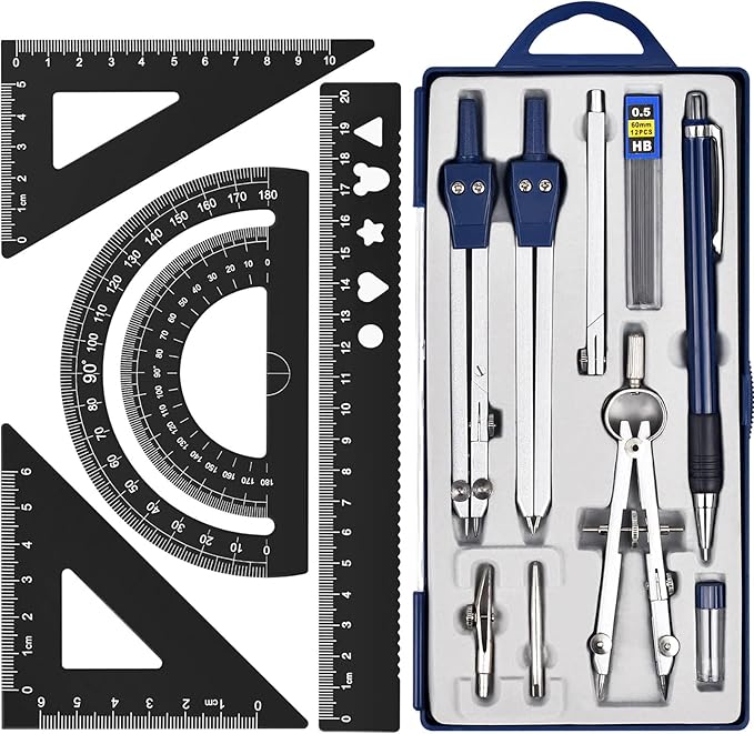 The Professional 14pcs Geometry Set includes a high-quality metal compass, precision rulers, protractors, and other essential drafting tools. Stored in a shatterproof case for durability and portability, this set is perfect for students, architects, engineers, and designers.